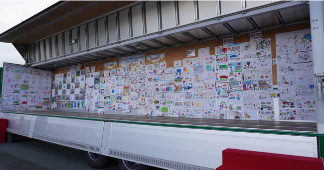 こども達の書いた絵をラッピングにすることで、トラックを見た全ての人の心に「やさしい気持ち」が芽生えます。4年前、たった1台から始まったこのプロジェクト、今では1,300台ものトラックがこども達の絵とともに全国を走っています。