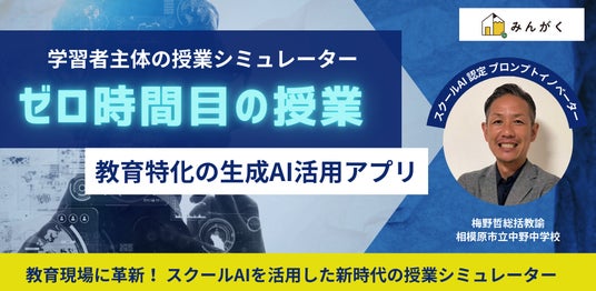 教育×生成AIで、教育サービスのプラットフォーム開発を手掛ける株式会社みんがく(本社:東京都目黒区、代表取締役:佐藤 雄太)は、相模原市立中野中学校・梅野哲総括教諭による、スクールAIを活用した学習者主体の授業シミュレーター「ゼロ時間目の授業」の開発を支援し、当アプリがリリースされたことを発表いたします。