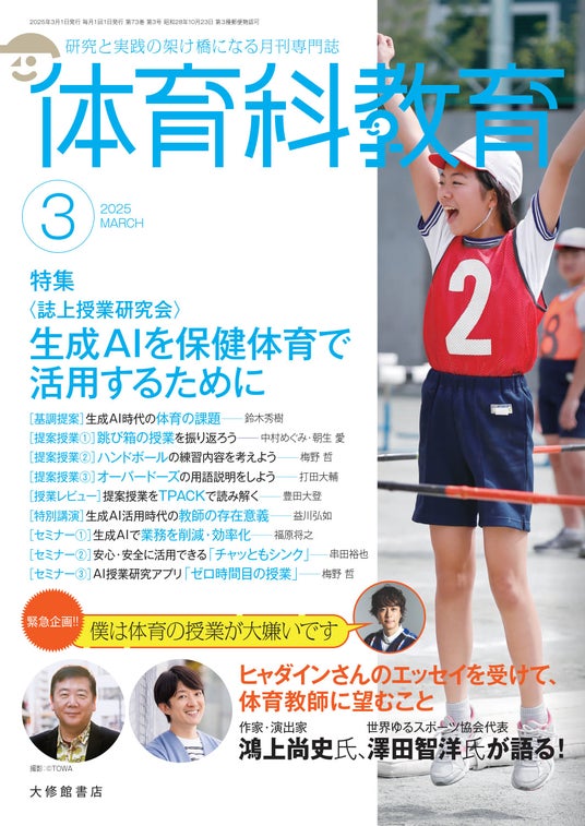 大修館書店より2月14日発売の「体育科教育2025年3月号」にて、教師のためのAI授業研究アプリ「ゼロ時間目の授業」が紹介されますので、そちらもぜひご確認ください。