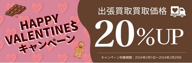 さらに現在、出張買取限定で買取価格が20%UPする『ハッピーバレンタインキャンペーン』も実施しています。