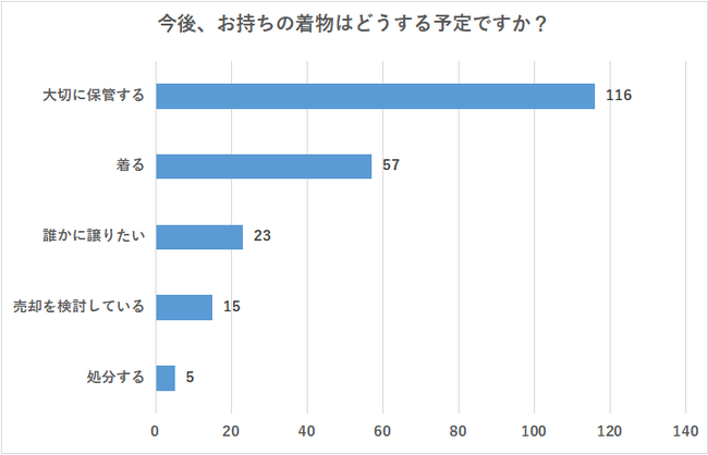 結果としては、「大切に保管する」という方が最も多く、着用頻度の少なさから長くよい状態を保てるよう丁寧に管理していることが伺えます。