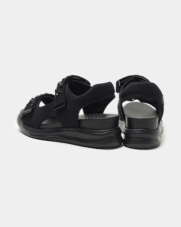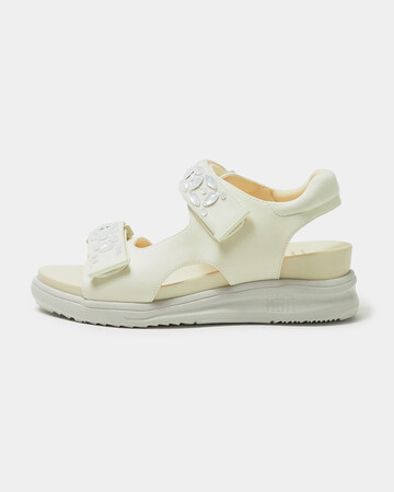 1.やわらかな速乾性ストレッチファブリックにスポンジを貼り合わせた生地をアッパーに使用。急な雨やレジャーはもちろん、汗をかいた次の日も気持ちよく着用できます。また、デザインは履き心地にも考慮した3点留めを起用。前足部と甲部はベルクロで調整が可能で、尚且つかかとにはやわらかなクッションを搭載し、スニーカーのような足にやさしいホールド力とサンダルの解放感の両方を実感していただけます。