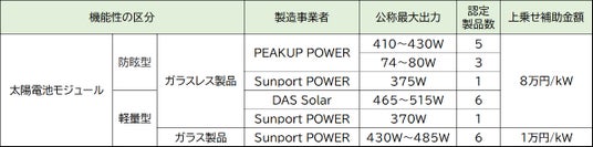 今回の認定によって、東京都の一般住宅で本製品を設置した場合、従来の補助金に加えて、1kWあたり1万円~8万円の補助金が上乗せされるようになります。