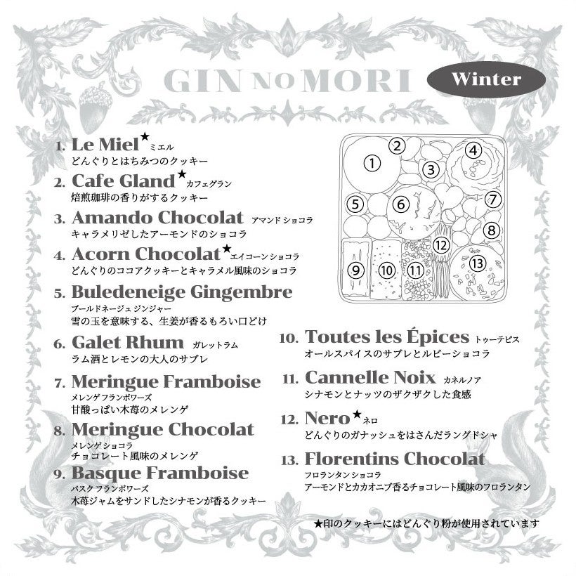 森の恵みクッキー プティボワ 150 Winter お品書き