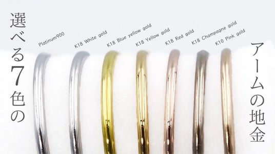 価値ある素材~7色の地金~7色の地金は、K18とK10,そしてプラチナ900をご用意しました。金には色々な色があり、金に混ざっている鉱物の色によって赤みが強かったり青みが強かったり様々です。