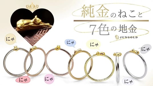 「純金で心躍る体験」をテーマに資産価値のある純金の新しいアイデアに挑戦している株式会社RAIN(本社:東京都台東区雷門、代表:石川 正道)は、「資産価値+心躍る体験」を提供する純金ブランドJUNGOLDから【7色の金に『K24純金のねこ』ちんまり可愛い、価値ある素材のねこのリング】プロジェクトをCreema Springにて4月24日(水)からスタートしました。24,800 円(税込)から。