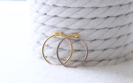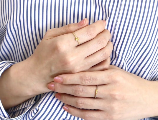 重ね付けにも向いてる華奢なデザインのカラバリが楽しい「ねこのリング」は2種類のねこのデザイン、2種類のアームのデザイン、6色の“金”とプラチナからお選びいただけます。