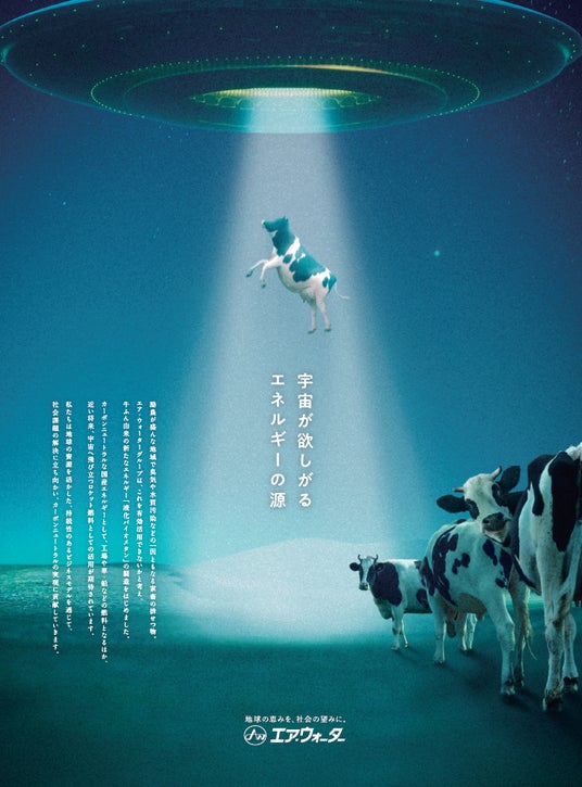 クリエイティブイメージはインパクトを重視し、UFOが家畜を連れていくという都市伝説をオマージュしました。「なぜUFOが家畜(牛)を欲しがったのか?」という謎に対する答えを示すことをテーマとし、家畜ふん尿が生み出すLBMがエネルギーとして利用されていく未来を、UFOは気付いていたことをビジュアル化しています。牛たちは列をなして自分の順番を待っており、ふん尿を回収したあと、牧草地へ帰っていきます。