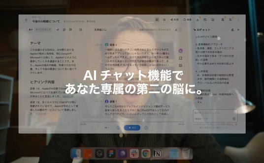 Nottaアプリと連携することで、過去の会議データや発言履歴に基づいた文脈を理解した検索・整理・要約が可能。インターネット上の情報だけでなく、自身のデータも深く学習。会議情報の抽出・検索・整理はもちろん、仕事の処理をサポートします。情報を覚える手間から解放され、情報収集やアイデア出しなど、より創造的な作業に集中できます。