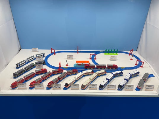 また、これまで販売されてきた名古屋鉄道のプラレールを展示します。現在では販売されていない商品も見ることができる貴重な展示です。