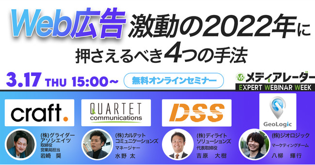 「メディアレーダーEXPERT WEBINAR WEEK」は様々な広告・マーケティングジャンルについて、複数の専門家たちが多角的に解説するマーケティングセミナーイベントです。
