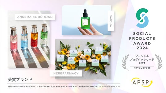 株式会社ピー・エス・インターナショナル(本社: 東京都港区、代表取締役会長兼社長兼CEO 浜口 直太)が展開する、静岡県の耕作放棄地からアップサイクルした「茶の実」の希少なオイルを使用したスキンケアブランド「采茶~SAICHA(サイチャ)」、自社農場で作られたハーブを使用した英国のオーガニックスキンケアブランド「Herbfarmacy(ハーブファーマシー)」、オーガニック先進国ドイツで誕生したナチュラルコスメブランド「ANNEMARIE BÖRLIND(アンネマリー ボーリンド)」が、一般社団法人 ソーシャルプロダクツ普及推進協会が主催する「ソーシャルプロダクツ・アワード2024」の自由テーマで「ソーシャルプロダクツ賞」を受賞しました。