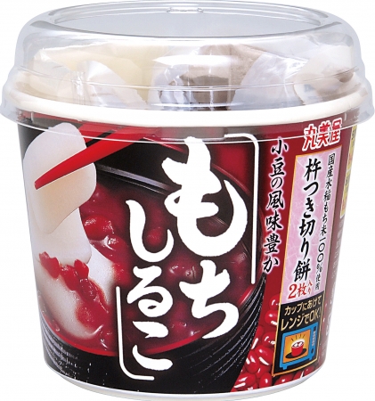 “しるこ”と“もち”がセットになったカップ入りのおしるこが、レンジで温めるだけで楽しめる