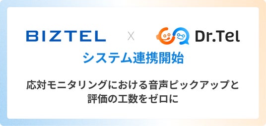 今回の連携により、BIZTELで通話録音されたデータが自動的にDr.Telへ連携され、AIによる応対品質の評価および改善フィードバックを行うことが可能になりました。これにより、従来人力で行っていた録音確認・評価・フィードバック業務を大幅に効率化できると同時に、評価精度の一律化やフィードバックの具体性向上を実現します。