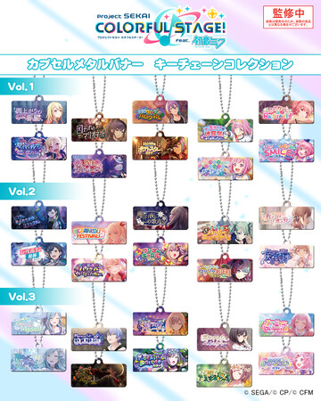 新発売の「プロジェクトセカイ カラフルステージ! feat. 初音ミク カプセルメタルバナー キーチェーンコレクション」は、過去のゲーム内イベントやイベントガチャのバナーを使用した“プロセカ”のヒストリーを感じることができるファン必見のアイテムとなっております。思い出のイベントバナーをぜひお手元にお迎えください。