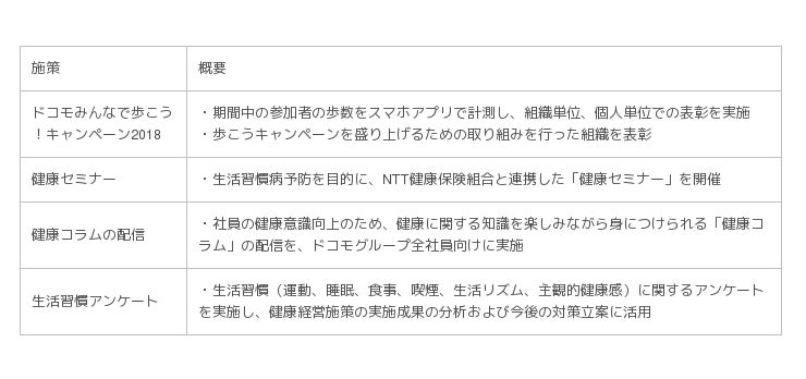 ドコモグループは今後も健康経営を推進するとともに、自社での経験を踏まえ、多様な法人向けサービスで、企業の健康経営をサポートしてまいります。