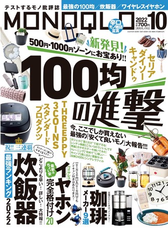 10月号は、「100均の進撃」を大特集! セリア・ダイソー・キャンドゥなど、レベルアップを続ける100均が物価上昇時代の救世主に。ガジェットから文房具・日用品まで、今、ここでしか買えない最強の「安くて良いモノ」を大発表しています。ほかにも、食卓の主役を張れる激ウマご飯が炊ける「炊飯器 最強ランキング2022」や、安くてもしっかり聴ける「ノイズキャンセリング完全ワイヤレスイヤホン ABC判定」など、今欲しい情報満載でお届けしています。本リリースでは、編集部が“本当におすすめできる”製品の一部をご紹介します。