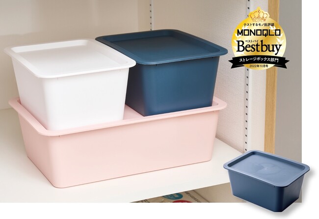 フタつきの小物ボックス。フタで中身の乱雑さを隠せるので、小物類をとりあえず入れるには最適です。色も複数あるため「この色にはコレ」という使い分けも可能。箱の内部に余計な出っ張りがなく、使いやすさも優秀!