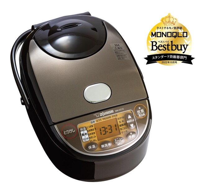 炊きたての美味しさは他機種と比べてもとにかく別格。無洗米を吸水なしで炊飯しても、お米がしっかりと糊化していて、甘みも旨みもダントツに引き出せています。また、食感もモチモチとしていながら粒立ちが良く、食べ応え十分。「味の濃い料理と合わせても脇役にならず、主役として存在感を発揮できる味」とプロもべた褒めでした。また、炊き分け機能が充実しているほか、大画面の液晶とタッチパネルで迷わずスムーズに操作できるのも大きな魅力。実勢価格は14万円台となかなか手を出しにくい金額ですが、それに見合った極上のご飯を味わえる最強の一台です。