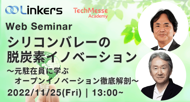 リンカーズ株式会社(本社:東京都文京区、代表取締役社長:前田 佳宏)は、ものづくり企業のオープンイノベーションを推進する技術者や研究者を対象に、シリコンバレーの脱炭素オープンイノベーションに向けた取り組みを紹介する Web セミナーを、11 月 25 日(金) 13:00 より開催いたします。