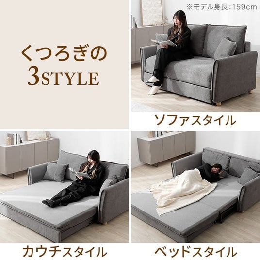 マットレスメーカーのクッションを採用することで、沈み込みすぎず自然に支えるので、座り心地の良さはもちろんのこと、広々くつろげるダブルサイズのベッドに大変身するので寝心地も抜群。