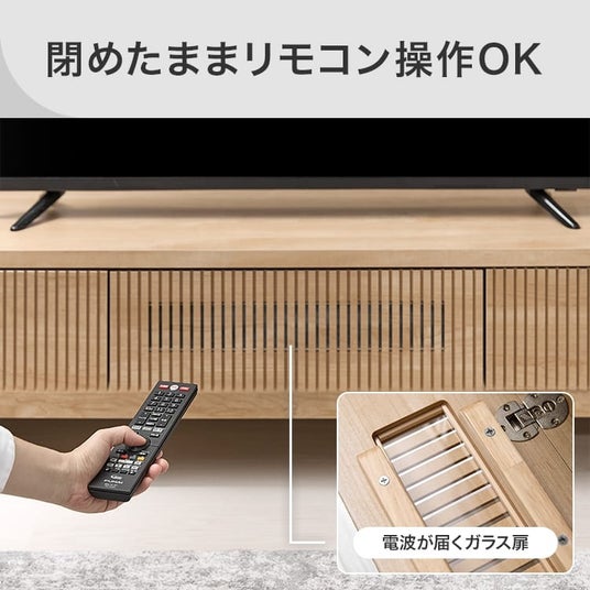 扉を閉めたままリモコン操作可能、コードスリット設備で壁にピッタリ設置可能、背面にはコード類のタップ収納など、こちらの商品で生まれたギミックは大変好評いただき、その後の商品開発へも活かされています。