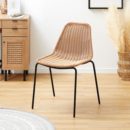 『オシャレな部屋にしたいけど、何か物足りない……』『今ある物はそのままで、マンネリ部屋を打開したい……』そんな悩みも解決!お部屋を手軽にアップデートしてくれる、LOWYAオリジナルデザインの「ラタン調ダイニングチェア」。編み目の表情豊かな質感と、あたたかみのある色味のラタン調に、スタイリッシュで落ち着きのあるマットブラックのスチールを組み合わせました。雰囲気の違う素材を合わせることで、こなれ感が生まれます。