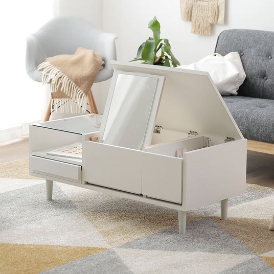 お部屋にドレッサーを置きたいけど、スペースを取りたくない...!そんなお悩みを解決すべく、おしゃれなセンターテーブルとドレッサーがコンパクトに一体化したLOWYAの「ドレッサーテーブル」。ひとつで二役で便利なだけでなく、デザイン性、使い勝手やサイズ感 (幅95cm)にも、とことんこだわり完成させました。