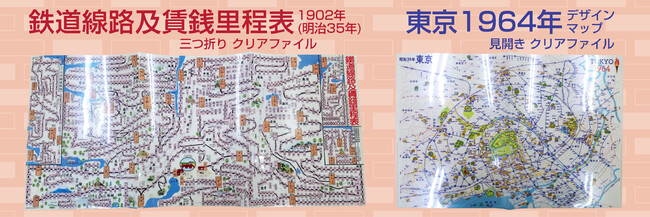 鉄道線路及賃銭里程表1902年(明治35年)三つ折りクリアファイル&東京1964年デザインマップダブルポケット見開きクリアファイル2点セット 価格 1350円(税込み) https://item.rakuten.co.jp/asamizu/10013770/