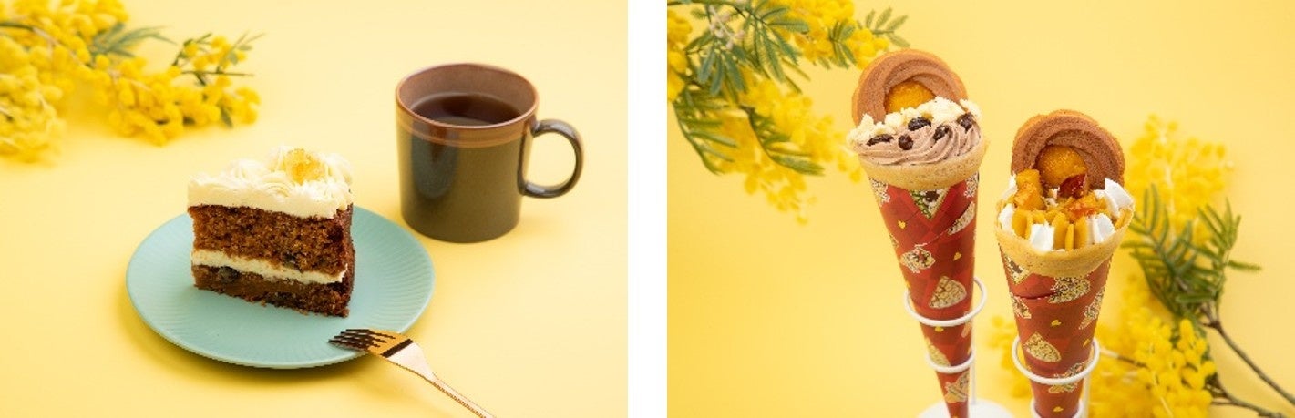 ミモザフェスタ期間中、ラ チッタデッラでは「ミモザフェア」を開催。各店舗が春の訪れを感じさせるスペシャルメニューや限定アイテムを展開し、この時期ならではの季節感を存分にお楽しみいただけるフェアです。今年は、人気クリエイターとのコラボレーション企画が新たに登場。料理家 yuka*cm と「白熊堂」によるコラボレーションでは、にんじん、パイナップル、くるみ、ココナッツ、レーズンを贅沢に使用したキャロットケーキを展開。しっとりとした生地に、刻みレモンピールをあしらったフロスティングでミモザを表現した、yuka*cmならではのこだわりが詰まった一品です。