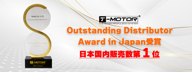 T-MOTOR日本正規代理店であるTEAD株式会社は、T-MOTOR社から「Outstanding Distributor Award in Japan」を受賞しました。T-MOTOR社から贈られる「Outstanding Distributor Award in Japan」は、T-MOTOR製品の売上が最も多い日本正規代理店を表彰するアワードで、各日本正規代理店の売上高を基に選出されています。