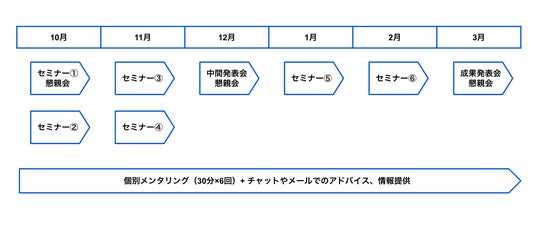 「新規事業開発実践プログラム」は、集合型セミナーと個別メンタリングを組み合わせ、