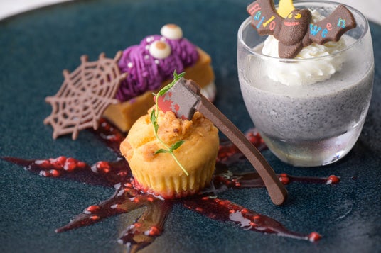 また、ザ・ロビーラウンジではハロウィンオリジナルのデザートプレートを、バーや和食レストラン「もんど岬」では、オリジナルカクテルをご用意しております。