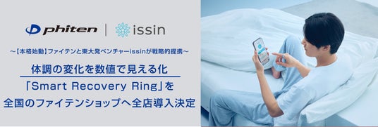 ボディケアカンパニーのファイテン株式会社(所在地:京都市中京区、代表取締役:平田好宏、以下ファイテン)と、家族のカラダとココロの健康維持・増進をテクノロジーで実現する、東京大学発ヘルスケアスタートアップの issin 株式会社(本社:東京都文京区 代表取締役:程 涛、読み:イッシン、以下「issin」)は連携し、一部店舗で実施していたリカバリー可視化のテスト運用を完了。その結果、お客様からの多大な反響をいただいたことから、全国のファイテンショップへの「Smart Recovery Ring(スマートリカバリーリング)」の本格導入を決定いたしました。これまで体感値でしか測れなかった「リカバリー」が数値化され、お客様一人ひとりの悩みに寄り添った最適なセルフケア方法や商品選定をアドバイスしていくことにより、ファイテン商品の価値をより実感できる環境を作ってまいります。