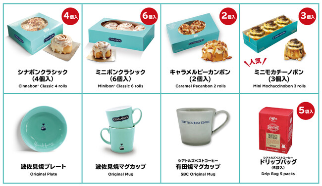 また、「シナボン」と相性が抜群の「シアトルズベストコーヒー」のドリップバッグコーヒーや、シナボングッズも豊富に取り揃えております。