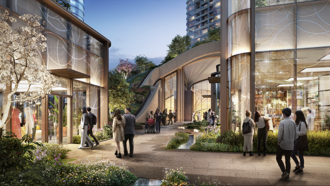 その他にも、「麻布台ヒルズ」には緑に包まれた環境の中、大規模な商業ゾーンが広がります。