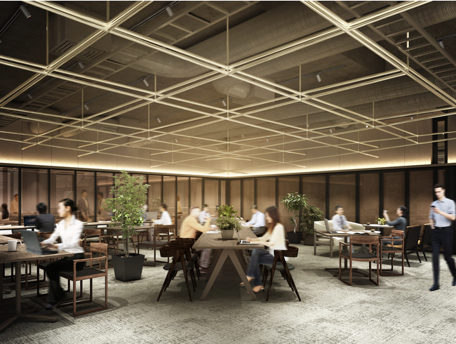 「麻布台ヒルズ森JPタワー」におけるオフィスの基準階貸室面積は、約4,800m²(約1,450坪)と、最大級のフロアプレートを持ち、グローバル企業の多様なニーズにこたえる国際水準のオフィスです。