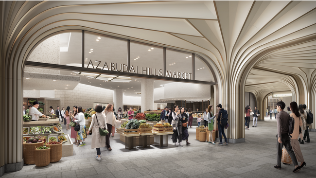 中央広場の地下には、施設面積約4,000m²(約1,200坪)を誇る「麻布台ヒルズ マーケット」が誕生します。
