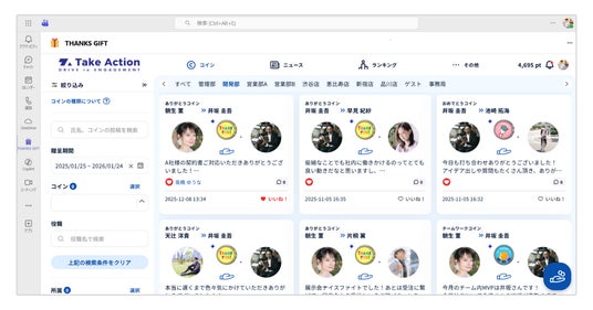 株式会社Take Action(本社:東京都品川区、代表取締役:成田 靖也)は、組織のエンゲージメント向上を支援するプラットフォーム「THANKS GIFT」において、「Microsoft Teams(以下、Teams)」との連携アプリを提供開始いたしました。
