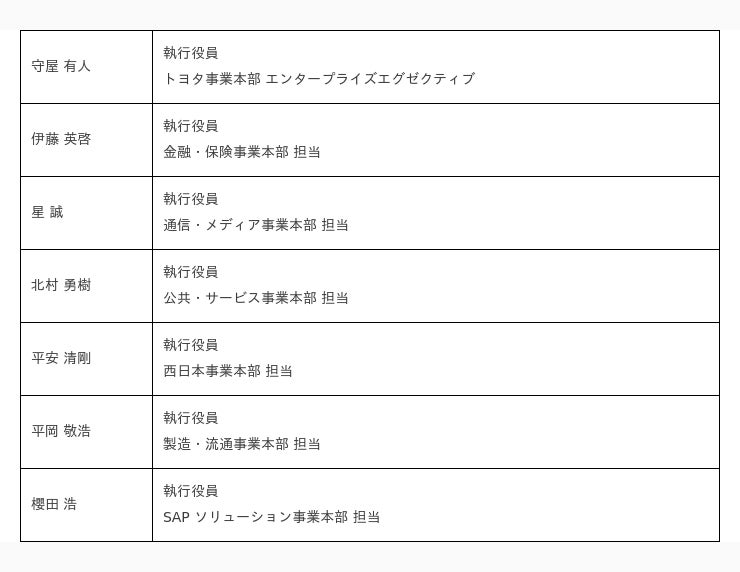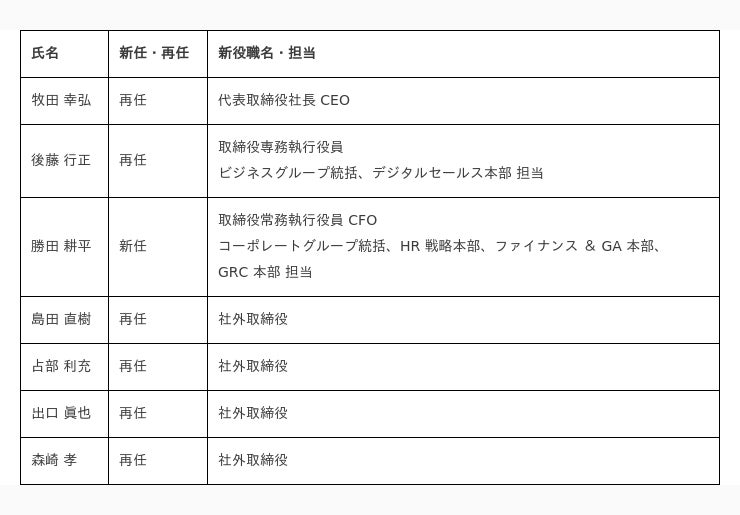 日本ビジネスシステムズ株式会社(本社:東京都港区 代表取締役社長:牧田幸弘、証券コード:5036)は、本日開催の定時株主総会及び、取締役会において、下記の通り役員を選任しましたことをお知らせします。また、2024年1月1日付で部長・室長の人事異動並びに組織改編を実施します。