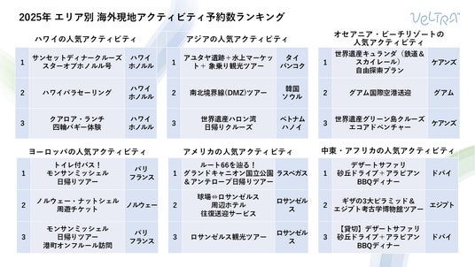 現地体験型アクティビティ専門予約サイト『ベルトラ』を運営するベルトラ株式会社(本社:東京都中央区、代表取締役社長:二木 渉)は、今年の夏季期間における海外現地体験アクティビティの予約動向に関する調査結果をまとめましたので、お知らせいたします。