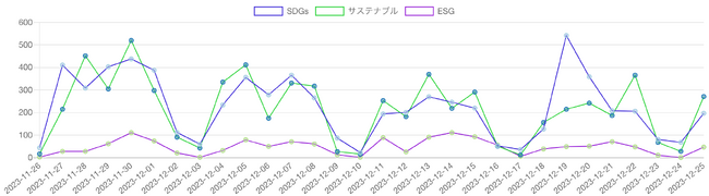 株式会社トドオナダ(代表取締役社長 松本泰行)は、2023年11月26日~2023年12月25日までのSDGs・ESG・サステナビリティに関するウェブニュースについて調査・分析いたしました。4,000以上のWEBメディアをモニタリングできるPR効果測定サービス「Qlipper」(https://qlipper.jp/)のデータに基づいた調査結果です。