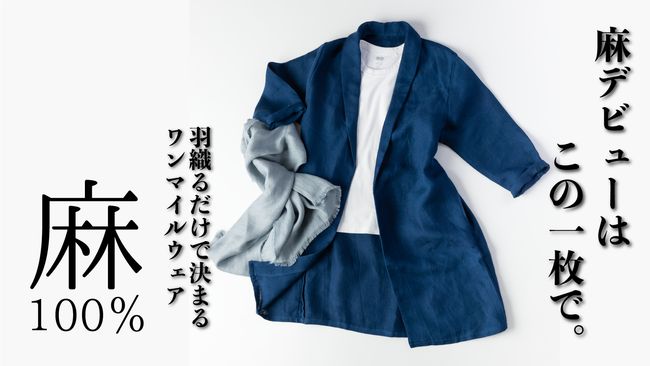 ・タイトル:【タオル屋が考えた】お家でも外でも羽織るだけで決まる!麻100%ワンマイルウェア