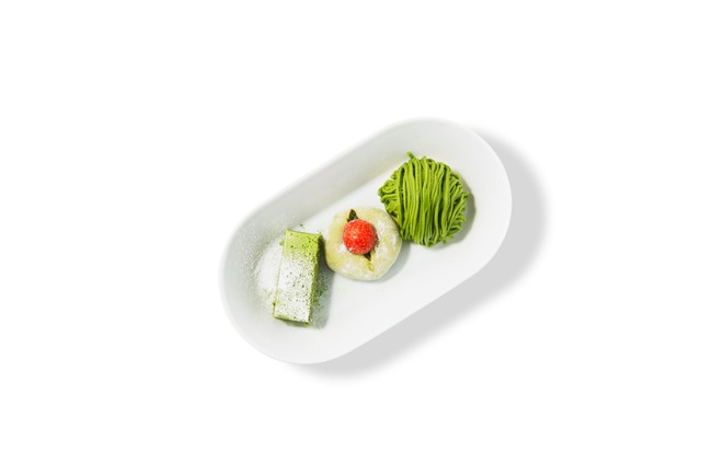 抹茶ガトーショコラ、抹茶いちご大福、抹茶モンブランの3種のデザートが楽しめる抹茶づくしのデザートセット。ドリンクバーで提供しているコーヒーや紅茶と一緒にどうぞ。