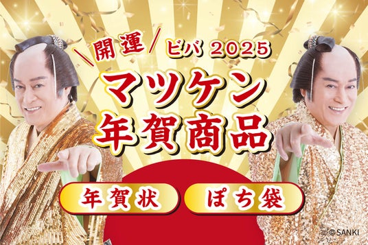『フタバ株式会社』(本社:愛知県名古屋市、代表取締役:市川 隆史)は、2024年11月1日(金)から「マツケンボイス付年賀状パック」「輝く!マツケンぽち袋」を全国の取扱い販売店およびフタバオンラインショップより順次販売開始いたします。「輝く!マツケンぽち袋」は10月中旬より発売中の店舗もございます。※詳細は販売情報をご覧ください