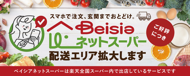 株式会社ベイシア(本社:群馬県前橋市、代表取締役社長:橋本 浩英)は、楽天グループ株式会社(以下「楽天」)が提供するネットスーパーのプラットフォーム「楽天全国スーパー」の対象店舗として、群馬県で新たに4店舗からの配送を開始することになりましたのでお知らせします。これにより、群馬県内の配送エリア13万世帯から24万世帯をカバーすることになります。「ベイシアネットスーパー」は、WEB上で注文された商品をベイシアの店舗からピックアップしてお客様宅へ配送します。最短で注文当日の配送が可能で、最長で3日前から注文を承ります。リアル店舗の強みを活かし、最大30,000点にのぼる商品をご提供します。ベイシアはネットスーパーを通じて、お客様の「時間」と「距離」における生活課題の解消に貢献してまいります。