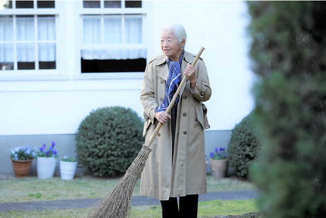 御年88歳の素敵なおばあちゃま、ワンピースにパンツを合わせたコーディネートに、薄手のコートをはおるというスタイルは、もう何十年もの変わらない定番なのだとか。日課はご近所のお掃除。「人があまりしたがらないことをするようにしているの」という素敵なお話もお聞きできました。