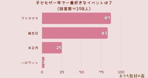 「子どもが一年で一番好きなイベントは?」とアンケート調査した結果、1位は『クリスマス』でした。