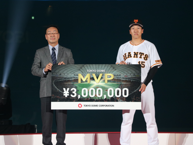 株式会社東京ドームは、毎年「東京ドーム」をフランチャイズとする読売巨人軍から、東京ドームで開催された今シーズンの公式戦において最も顕著な活躍をした選手に、『東京ドームMVP賞』(副賞300万円)をお贈りしております。(1980年開設、1987年までは「後楽園MVP賞」)