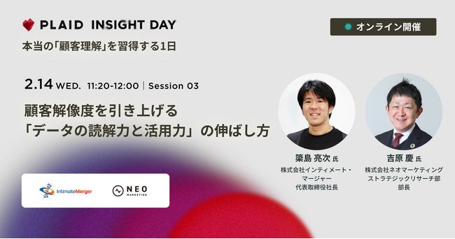 国内最大級パブリックDMPを提供するデータプラットフォームカンパニーの株式会社インティメート・マージャー(本社:東京都港区、代表取締役社長:簗島 亮次、以下当社)は、株式会社プレイド(本社:東京都中央区、代表取締役 CEO:倉橋 健太)が主催するオンラインイベント「INSIGHT DAY本当の「顧客理解」を習得する1日」に、当社の代表取締役社長・簗島亮次が登壇することをお知らせします。